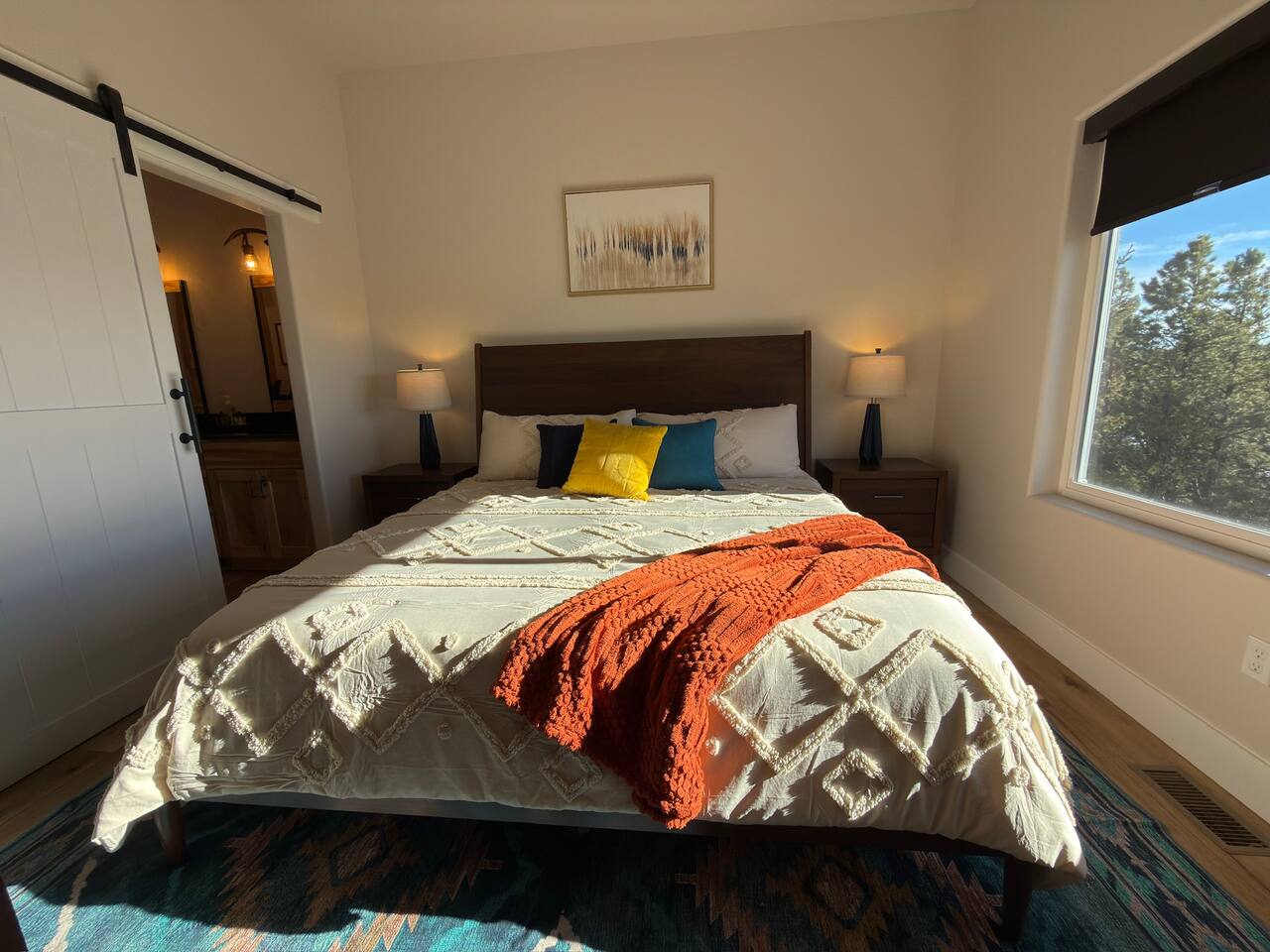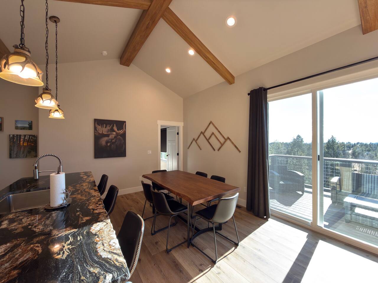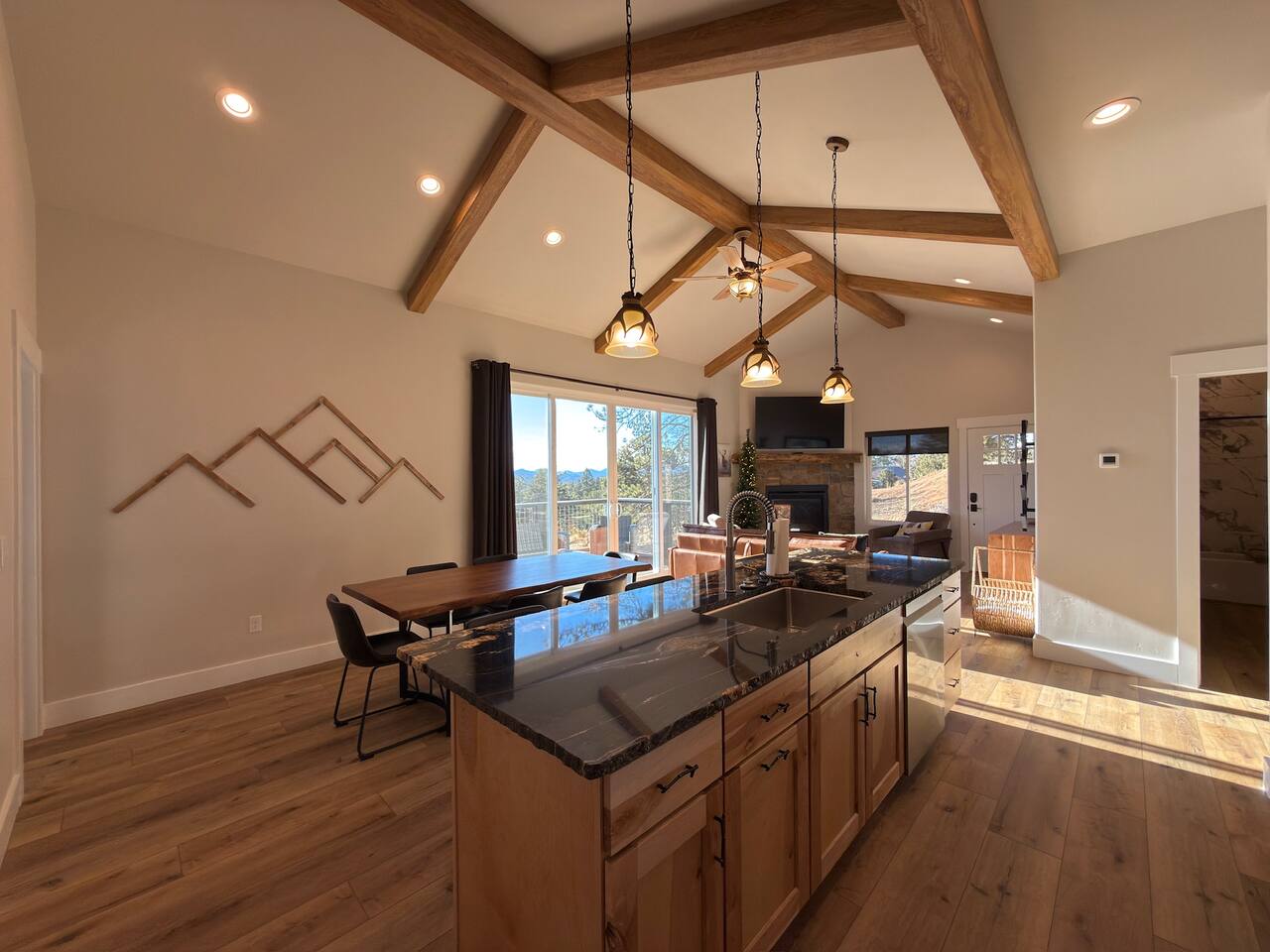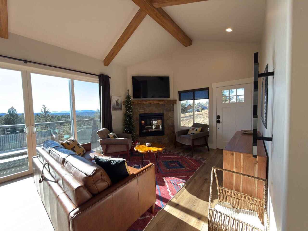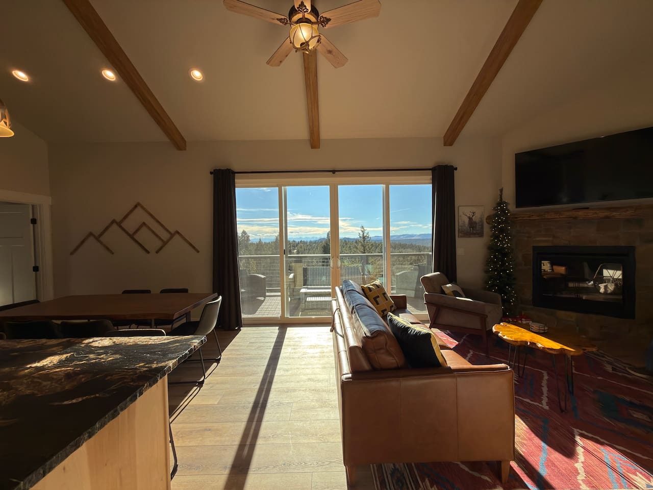 Escape to this peaceful mountain cabin nestled among towering pines and open skies. Perched on a gentle hillside, this modern yet cozy retreat offers the perfect blend of comfort, privacy, and natural beauty. Unwind in the relaxing hot tub as the sky fills with stunning pink and golden sunsets, or enjoy a quiet morning on the elevated deck surrounded by forest views and fresh mountain air. Inside, warm lighting and a thoughtfully designed layout create an inviting space to relax after a day of exploring or simply disconnecting from the bustle of everyday life. The cabin is ideal for couples, small families, or solo travelers seeking a serene getaway. With plenty of space to breathe, nearby nature in every direction, and a tranquil setting that feels worlds away, this is the perfect place to slow down, recharge, and reconnect. Whether you’re soaking under the stars, sipping coffee on the deck, or enjoying the peaceful surroundings, this cabin offers a true retreat into nature—comfortable, quiet, and unforgettable.
