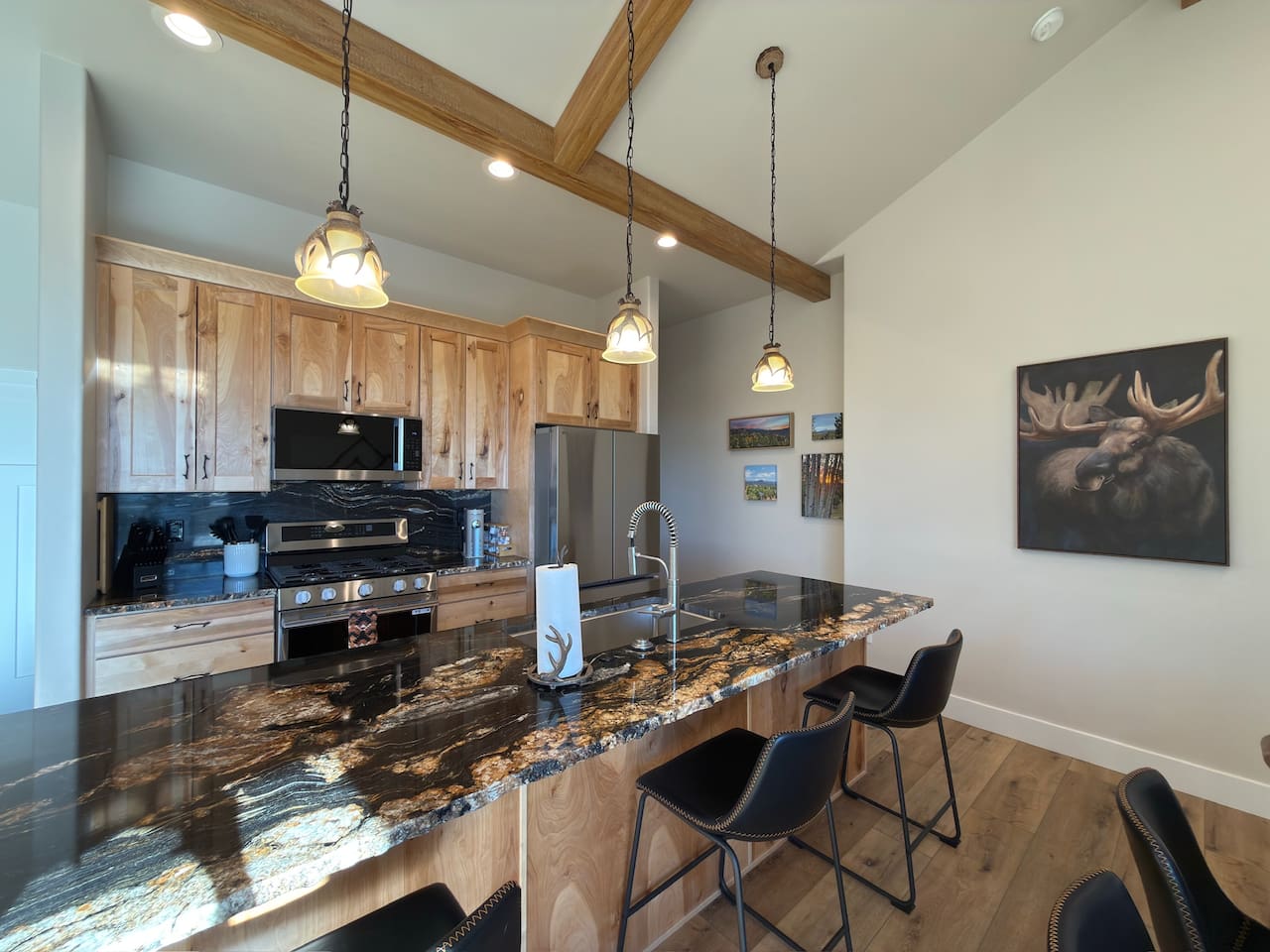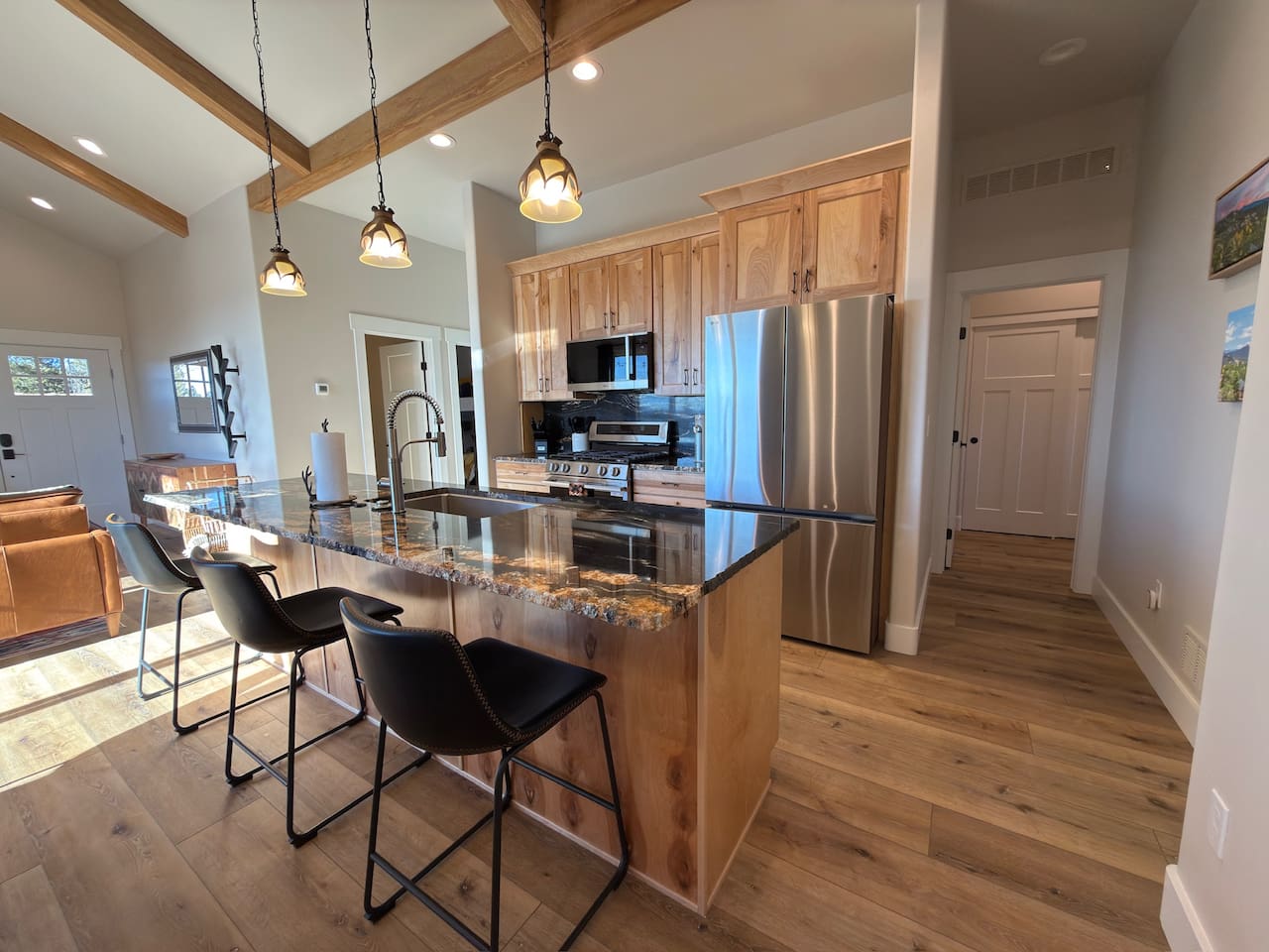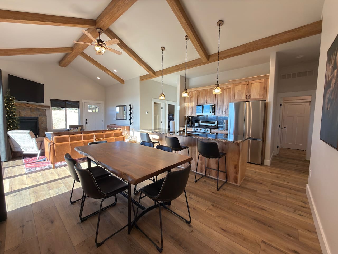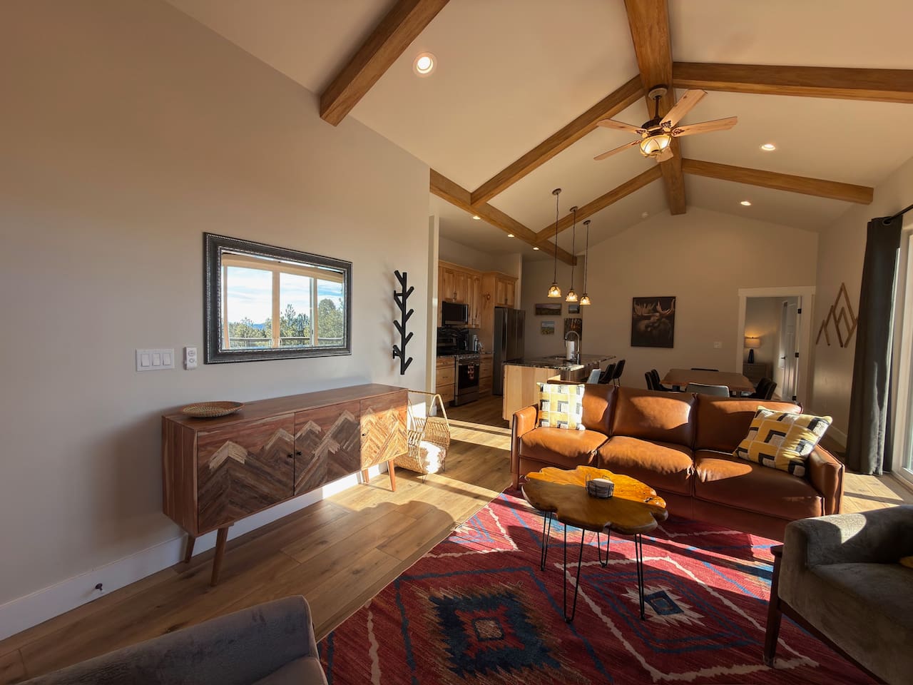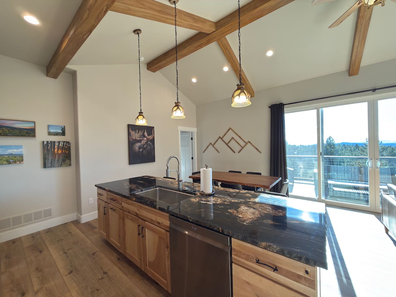 Escape to this peaceful mountain cabin nestled among towering pines and open skies. Perched on a gentle hillside, this modern yet cozy retreat offers the perfect blend of comfort, privacy, and natural beauty. Unwind in the relaxing hot tub as the sky fills with stunning pink and golden sunsets, or enjoy a quiet morning on the elevated deck surrounded by forest views and fresh mountain air. Inside, warm lighting and a thoughtfully designed layout create an inviting space to relax after a day of exploring or simply disconnecting from the bustle of everyday life. The cabin is ideal for couples, small families, or solo travelers seeking a serene getaway. With plenty of space to breathe, nearby nature in every direction, and a tranquil setting that feels worlds away, this is the perfect place to slow down, recharge, and reconnect. Whether you’re soaking under the stars, sipping coffee on the deck, or enjoying the peaceful surroundings, this cabin offers a true retreat into nature—comfortable, quiet, and unforgettable.
