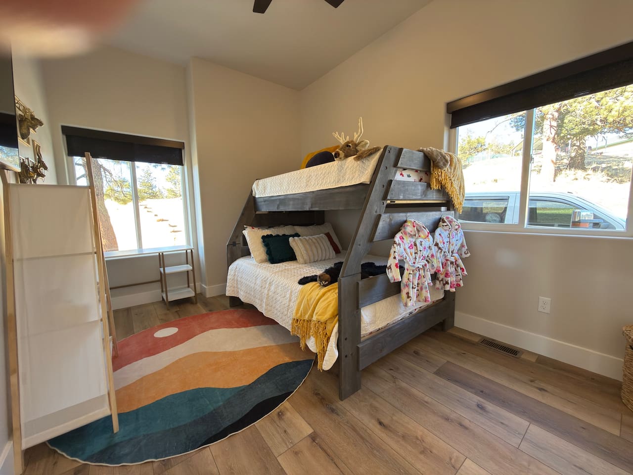 **PLEASE READ** •Absolutely NO large gatherings or parties allowed.  •Absolutely NO open fires are allowed. The risk of wildfire in the area is too high. If we see evidence of any fire there will be a $250.00 fine.  •Smoking and vaping are strictly prohibited anywhere on the premises. •No shoes in the house. There are a lot of wild things out there, and we with for them to stay out there. Please drop your shoes by the door. •Quiet hours are from 9:00 PM to 7:00 AM. Please keep noise to a minimum during these hours to respect our neighbors. •We ask all guests to treat the house and neighborhood with respect at all times. •Thank you for helping us maintain a peaceful and welcoming environment for everyone. •The roads may require AWD or 4WD November through April (however it can snow in October and in May!). The roads are plowed after 6 inches of snow. You do not need a 4WD or AWD in the summer but be aware that a portion of road to the house is dirt! •There is no air conditioning unit here. It is very rare in our county to have one installed in a house (even brand new builds!). The nights are cool in the summer so to cool the house off you can open all the windows and doors at night, then close them during the day and you stay cool! There are ceiling fans in each bedroom and in the living room to help circulate the cool air through the cabin. •We are at 9,200 feet in elevation — altitude sickness can occur but you can do things to prevent it and alleviate symptoms including, taking a day to rest when you arrive, drink extra water and stay well hydrated (avoiding alcohol will help). •Do not leave food outside unattended. Our local wildlife does include deer and the occasional bear, mountain lion, bobcat, and fox. •We do allow dogs to be added to your reservation (maximum of 2). If you are staying with pets, you are responsible for cleaning up after them. They must be on a leash at all times when outside of the house. We do charge a higher cleaning fee if we have to clean up after them.