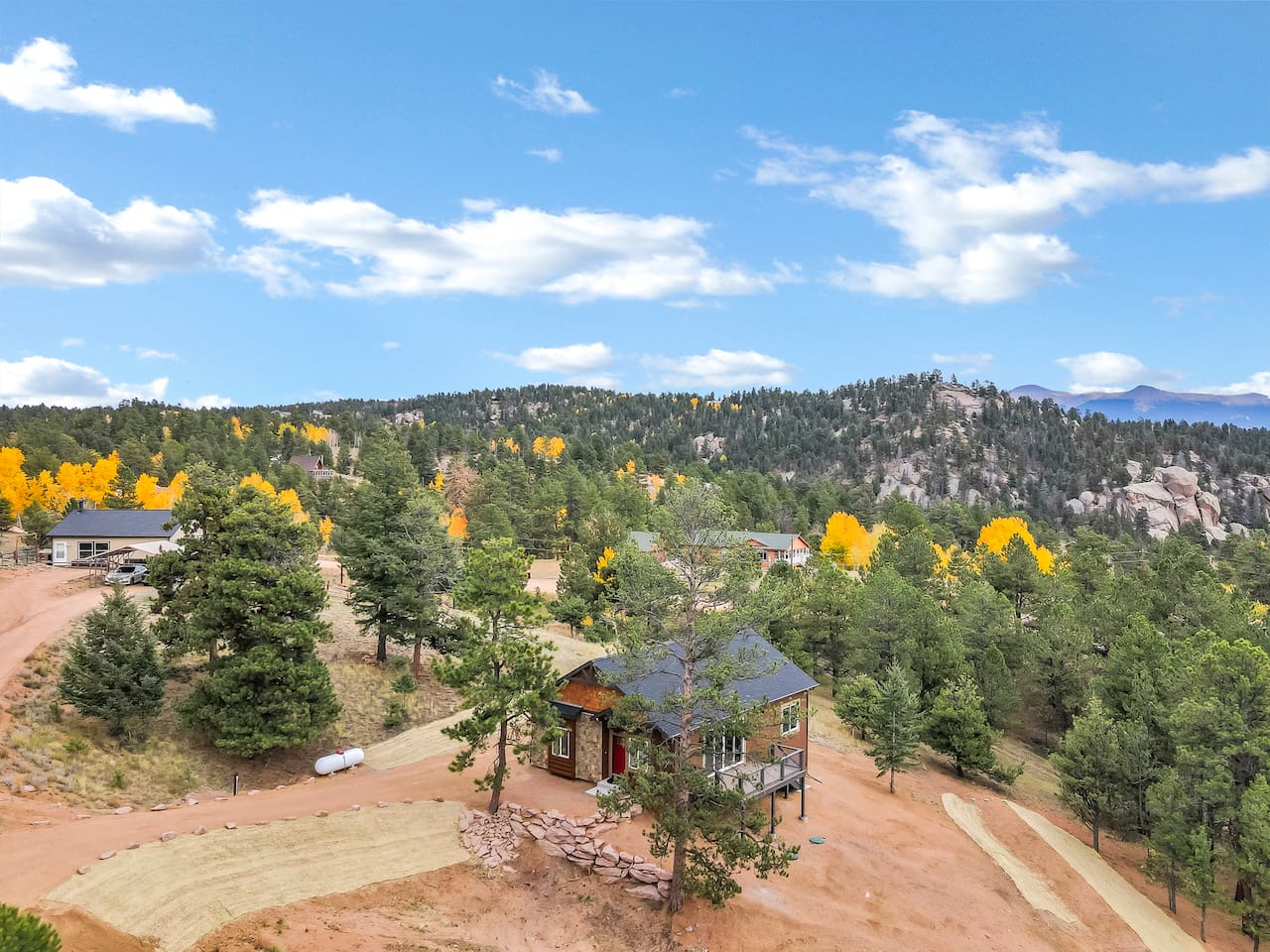 Getting around: Private vehicle is strongly recommended — most roads are two-lane mountain routes with limited sidewalks and infrequent public transit. Local driving times to services: about 30 minutes to Woodland Park and Cripple Creek, and roughly 20 miles (≈1–1.25 hours) to Colorado Springs for groceries, medical services and shopping.